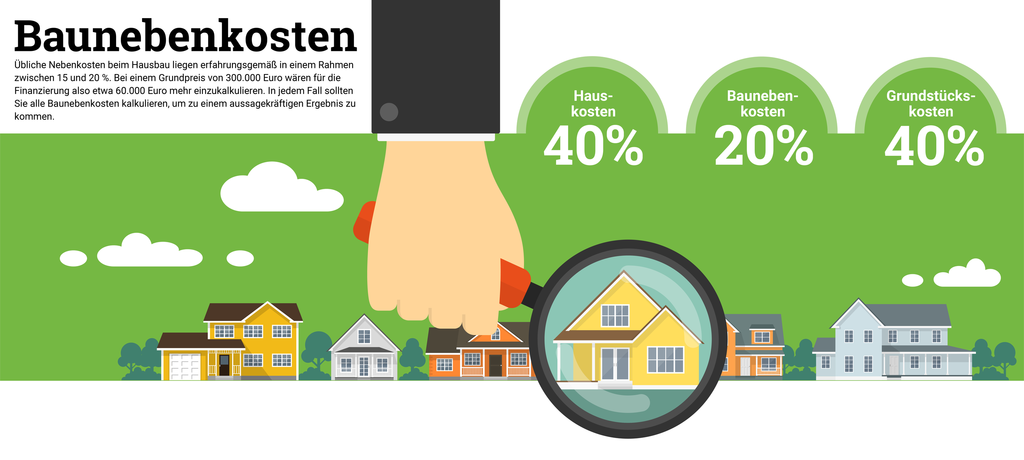 Oft werden diese Baunebenkosten auch als Kaufnebenkosten bezeichnet, da Sie im Zusammenhang mit Ihren Grundstückskauf anfallen. Die Baunebenkosten während und nach dem Bau werden bei der Baufinanzierung einkalkuliert. Dazu gehören beispielsweise Bodengutachten, Vermessungen und Entsorgung von Erdreich.