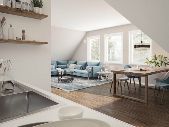 Bei Town & Country Haus können Sie sich online mit dem 3D-Konfigurator bereits sehr genaue Vorstellungen von Ihrem zukünftigen Zweifamilienhaus machen. Sie können z. B. die Dachform, Ziegelfarben, Fenster oder Haustüren variieren und die optischen Auswirkungen realistisch nachvollziehen. Schauen Sie sich den Grundriss genau an, um mit den räumlichen Möglichkeiten planen zu können. Klicken Sie auf einen Raum, um in die 3D-Ansicht zu gelangen. Die sichtbaren Einrichtungsbeispiele dienen der Orientierung. Sie zeigen Ihnen, wie der Raum genutzt werden könnte. Ergreifen Sie die Möglichkeit, Ihre Hauskonfiguration zu speichern. Dieser erste Entwurf kann eine gute Gesprächsgrundlage mit Ihrem Town & Country Haus Partner sein. Er sieht so auf einen Blick, was Ihnen wichtig ist bzw. wie Sie sich Ihre Zukunft im Zweifamilienaus vorstellen.