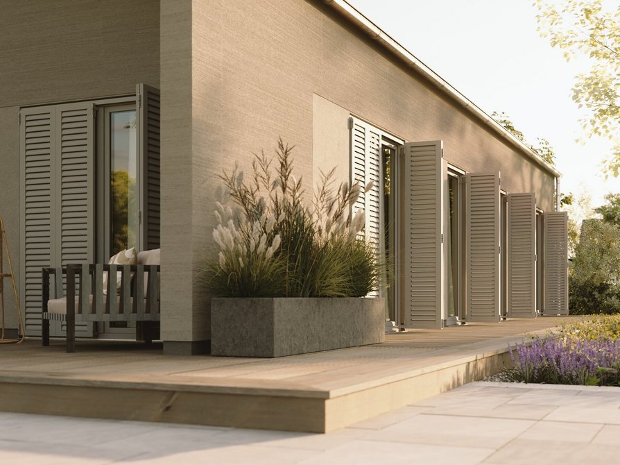 • Faltschiebeläden: Sie verpassen deinem Haus nicht nur einen neuen, ausgefallenen Touch, sondern können auch für die Verdunklung der Zimmer dienen. Es gibt sie in der Sicht- und Wetterschutz-Variante „SUN“, die sich dem Sonnenstand anpassen lässt, oder in der Variante „NATURE“ mit Naturholzstreben.
