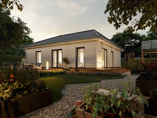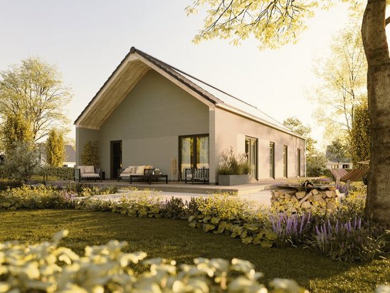 Wohnglück ohne Hindernisse - Dieser Bungalow fällt nicht nur durch sein charmantes Design auf. Die markante Winkelform ermöglicht auch einen variablen Grundriss. Die besondere Raumanordnung des Winkelbungalows 108 sowie die vielen kleinen Details machen das Wohnen für Sie zum Genuss.