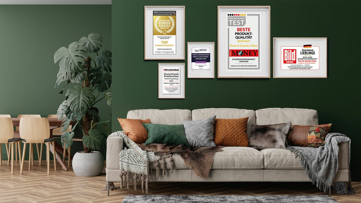 Ob höchste Kundenzufriedenheit, ausgezeichnete Produktqualität, herausragendes Preis-Leistungs-Verhältnis oder transparente Kommunikation: Town & Country Haus wurde bereits über 100-mal prämiert, von renommierten Instituten und in unabhängigen Verbraucherumfragen. Besonders stolz sind wir auf den Titel „Deutscher Kundenaward“, der unsere Arbeit und unser Versprechen bestätigt: Wir bauen nicht nur Häuser, wir schaffen Vertrauen.