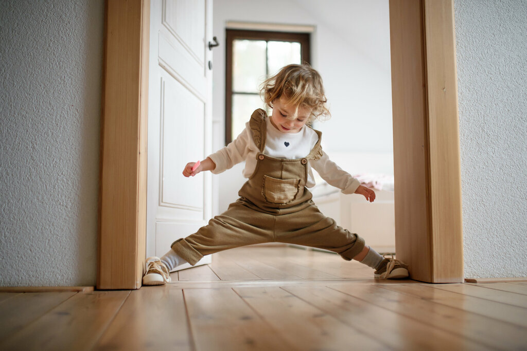 Tapeten und Böden sollten unbedingt stark beanspruchbar und leicht zu reinigen sein. Gleiches gilt auch für Innentüren, die in Kinderhaushalten bestenfalls lackiert und so abwaschbar versiegelt werden. Ein Fußboden aus geöltem Echtholz erweist sich als unpraktisch, während lackiertes Parkett oder Vinyl eine gute Lösung sind. Wenn es um die Auswahl der Wandfarbe geht, sind abwaschbare Farben die bessere Wahl. Denn: Kleinkinder entdecken auch gerne den Künstler in sich, indem sie an Wände malen.