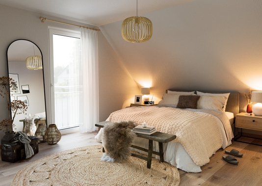 Sie ziehen bald in einen Neubau ein? Dann haben Sie vielleicht noch die günstige Gelegenheit, den Boden und die Wände im Schlafzimmer zu gestalten. Zu empfehlen ist Parkett aus einem hochwertigen Holz - Die Natürlichkeit dieses Materials wird das Schlafzimmer in eine reizvolle Atmosphäre tauchen.
