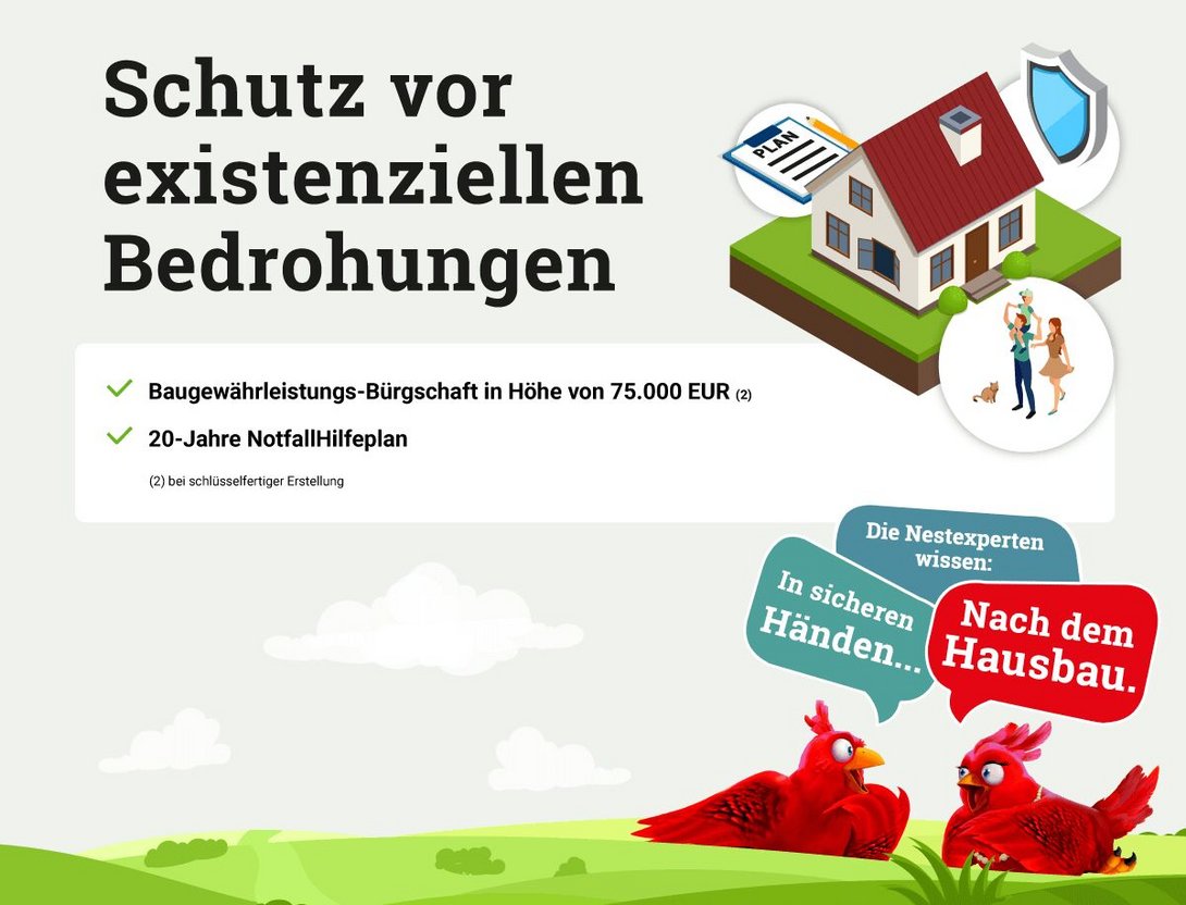 Neben diesen Garantien bieten wir Ihnen bei Town & Country Haus die Sicherheit, dass Sie bis zu 20 Jahre nach demHauskauf Unterstützung bei existenziellen Bedrohungen erhalten. Wenn Sie bei uns Ihr Haus kaufen, können Sie sich sicher sein, dass Sie auch nach dem Bau bestens abgesichert sind. Diesbezüglich bieten wir Ihnen bei Town & Country Haus eine Baugewährleistungsbürgschaft von 75.000 Euro und einen ebenfalls für 20 Jahre bestehenden Notfall-Hilfeplan. Als geprüfter Massivhausanbieter und Marktführer in der Branche sind wir von Town & Country Haus ein Ansprechpartner, der Ihren Hausbau mit größter Kompetenz realisiert und der Ihnen allein durch den konkurrenzlosen Hausbau-Schutzbrief eine ganze Bandbreite an Vorzügen garantiert. Wenn Sie wie die meisten Bauherrenfamilien nur einmal in Ihrem Leben ein Haus kaufen, sollten Sie sich für einen Anbieter entscheiden, bei dem Sie sich auf alle Versprechen verlassen können. Wir bauen Ihr Traumhaus und sorgen dafür, dass Sie in allen Projektphasen Sicherheit und Garantien erhalten.