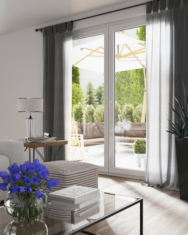 Fenster sind, was den Wärmeverlust angeht, die Schwachstellen eines Hauses. Um dennoch die Vorgaben der aktuellen Energieverordnung zu erfüllen, ist es wichtig, beim Kauf der Fenster auf den U- und g-Wert der Scheiben zu achten. Der U-Wert, auch als Wärmedurchgangskoeffizient bekannt, gibt an, wie viel Wärme des Hauses durch ein Fenster verloren geht. Aufgrund der energetischen Anforderungen muss der U-Wert mindestens 1,3 W/m2K betragen – ein Wert, der bereits mit zweifach verglasten Fenstern gesichert ist. Der g-Wert hingegen beschreibt, wie viel Sonnenenergie ins Haus gelassen wird. Dieser Wert sollte je nach Ausrichtung des Fensters im Haus variieren. Town & Country Haus verbaut in seinen Massivhäusern dreifach verglaste Fenster, deren U- und g-Werte die aktuellen Anforderungen des Gebäudeenergiegesetzes nicht nur erfüllen, sondern sogar übertreffen.