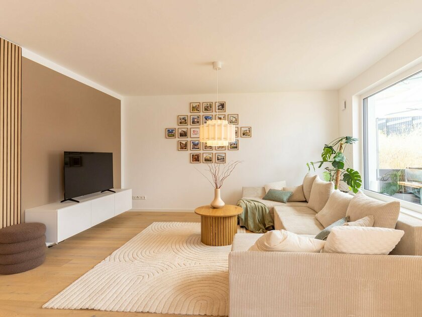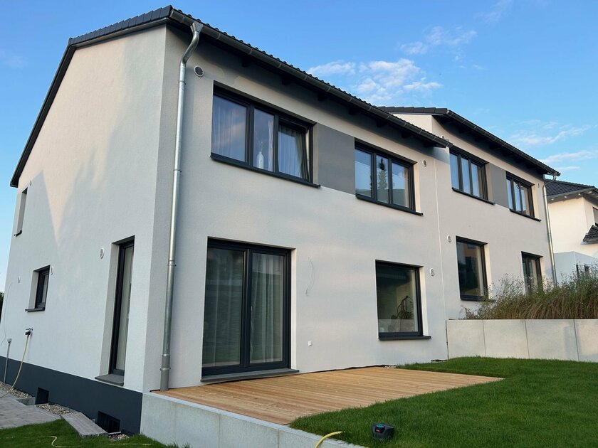 Mit seinen großzügigen Außenmaßen von 8 x 11 Metern wirkt dieses Haus alles andere als kompakt. Im Gegenteil: Die klare Architektur und die durchdachte Raumaufteilung verleihen der Doppelhaushälfte die Atmosphäre eines freistehenden Refugiums – privat, hell und voller Wohnqualität.
